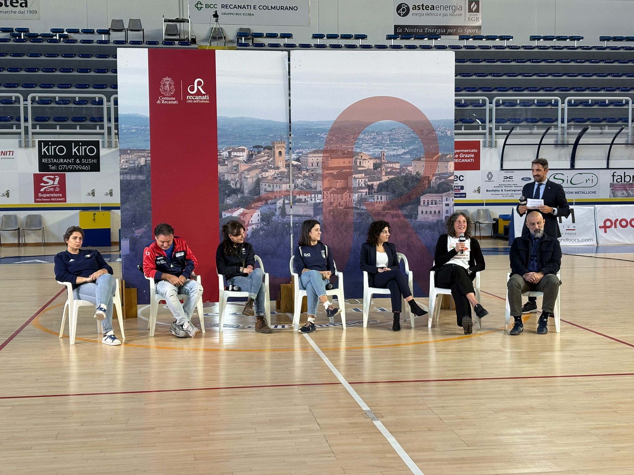 Gli sportivi che hanno interloquito con i ragazzi sono stati cinque, per cinque storie da ascoltare attentamente e tenere bene a mente: Veronica Papa, nata a Camerano, è stata ginnasta di altissimo livello, ha subito un grave infortunio al ginocchio e si è reinventata saltatrice da trampolino elastico, ha di nuovo subito infortunio e con grande forza e coraggio, è diventata una tuffatrice da grandi altezze entrando nello staff della nazionale di nuoto. Sarah Cinquini, vive a Porto San Giorgio, madre di 6 figli, è una straordinaria atleta di ‘ultraciclismo’ Percorre in solitaria grandissime distanze, ha recentemente partecipato alla Transcontinental Race (4.900 Km da Santiago a Costanza). Maria Bertola, campionessa italiana di Sumo, ha praticato anche Judo ad alti livelli. Nasce e vive a Porto san Giorgio, ha sconfitto il bullismo grazie allo sport. Jonatha Riderelli: vive a Recanati, ha vinto l’oro per il lancio del peso (argento per disco e giavellotto) che lo ha reso campione nazionale. A seguito di un grave incidente in auto che lo ha costretto a numerosi interventi e mesi di riabilitazione Jonatha ha ripreso in mano la sua vita raggiungendo importanti traguardi. Federica Sileoni, è nata a Recanati, ha 27 anni, ha cominciato a praticare equitazione quando ne aveva 7. Presto, però, quella che era solo un’attività sportiva si è trasformata in una vera passione, che ha coinvolto tutta la famiglia. Dopo la laurea in Psicologia, Federica ha conseguito un master in Management e Gestione delle Attività Sportive e oggi sogna di affiancare alla carriera di atleta quella di tecnico. Tra i partecipanti anche Angelo Cetera, sportivo e psicologo dello sport: utilizza le conoscenze psicologiche per ottimizzare la prestazione e il benessere degli atleti, lavorando su motivazione, concentrazione, gestione dello stress ed emozioni. Un elemento centrale del suo lavoro è potenziare la resilienza.