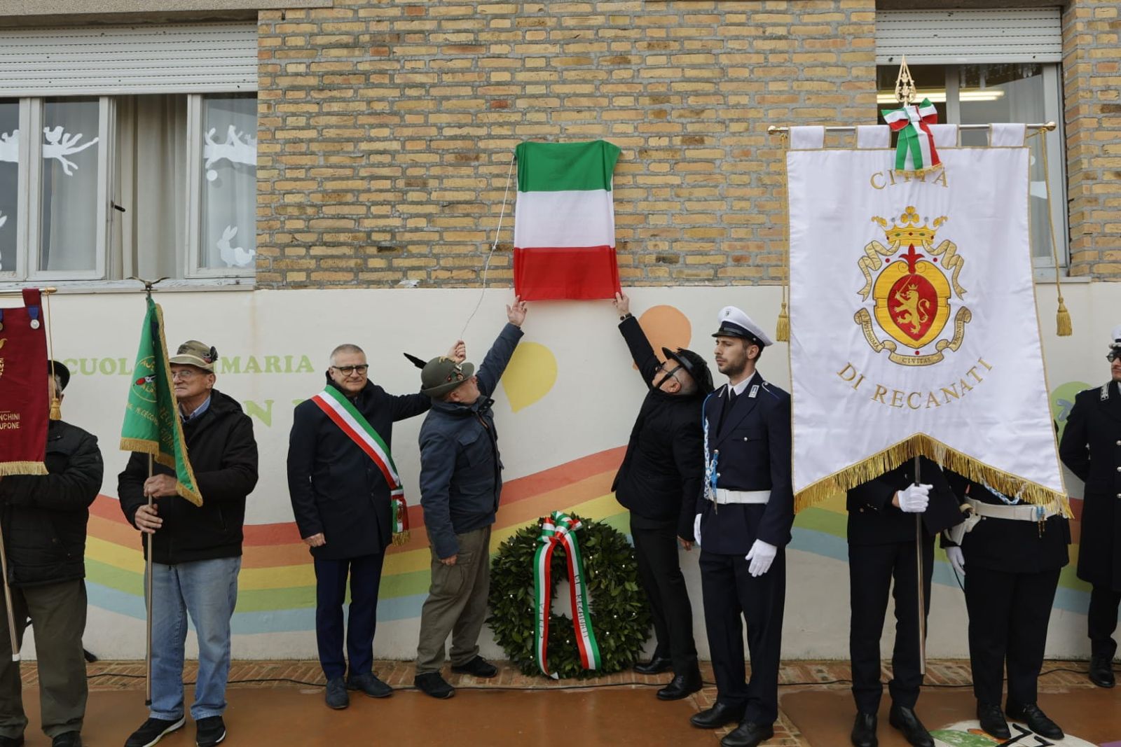 La lapide è stata scoperta alla presenza del vicesindaco di Recanati Roberto Bartomeoli, dell’Assessore alla Cultura Ettore Pelati e dell’Assessore alla Scuola Emanuela Pergolesi, intervenuti durante la manifestazione, oltre agli Assessori Paoletti e Bertini, con il presidente del Consiglio comunale Benito Mariani e il consigliere Pierluca Trucchia. intervenuti durante la manifestazione. È seguita la benedizione da parte del parroco don Roberto Zorzolo e la deposizione di una corona d’alloro a nome della Giunta, al suono del silenzio. Hanno partecipato alle celebrazioni le Associazioni combattentistiche, tra cui l’Associazione Nazionale Bersaglieri, l’Associazione nazionale Alpini gruppo di Recanati-Castelfidardo, il Gruppo comunale di Protezione Civile e i rappresentanti dell’Associazione Nazionale Venezia Giulia e Dalmazia Marche sud, che ha collaborato alla realizzazione degli eventi in occasione del Giorno del Ricordo. Particolarmente sentita la partecipazione degli studenti dell’Istituto Comprensivo Badaloni della sede San Vito con classi delle scuole dell’Infanzia, della Primaria e della Secondaria, accompagnati dalla Dirigente Annamaria De Siena e dalle insegnanti.