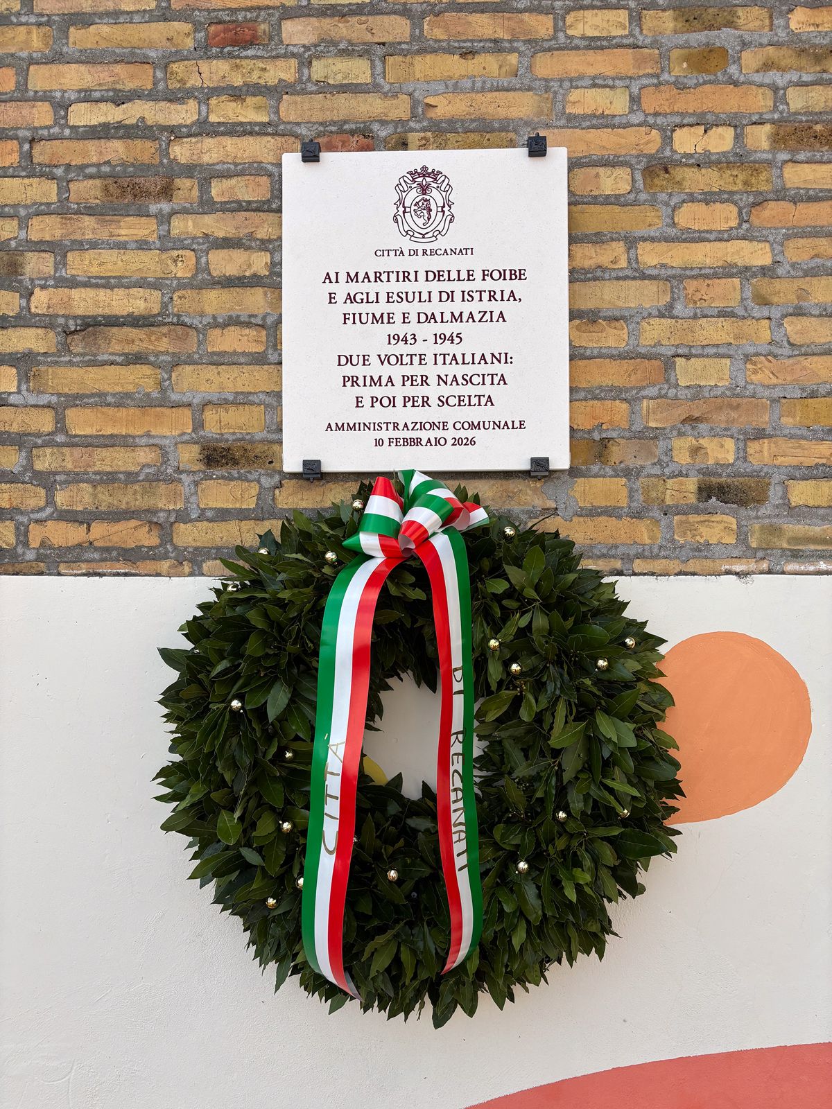 Il Comune di Recanati ha celebrato oggi (10 febbraio, ndr) la commemorazione degli esuli istriani, dalmati e giuliani e delle vittime delle foibe in occasione del Giorno del Ricordo. Lo ha fatto con l’apposizione di una lapide commemorativa scoperta nella mattinata presso la piazzetta Belvedere, adiacente alla scuola ‘San Vito’ e in un luogo altamente simbolico per la posizione affacciata verso il mare Adriatico, idealmente rivolta verso le terre perdute dagli esuli. Perseguitati dal regime titino e vittime di ripetute e inaudite violenze per la loro origine, gli italiani di Istria, Dalmazia e Venezia-Giulia furono costretti all’esodo verso la Penisola, abbandonando le proprie case e i propri beni.